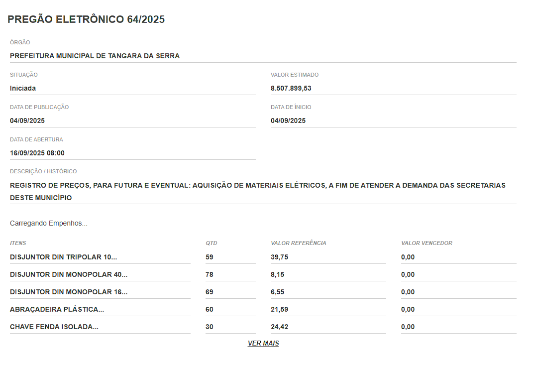 REGISTRO DE PREÇOS, PARA FUTURA E EVENTUAL: AQUISIÇÃO DE MATERIAIS ELÉTRICOS, A FIM DE ATENDER A DEMANDA DAS SECRETARIAS DESTE MUNICÍPIO